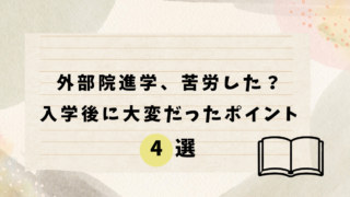 「外部院進学すると、内部生とのコミュニケーションとか大変そう...」「周りの学生と仲良くできるか心配...」そう感じている人も多いはずです。今回は、私立大学から旧帝大の大学院に進学した私が「外部院進学して苦労したこと」について解説していきま...